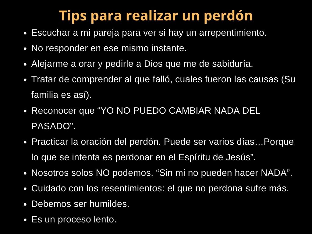 Debemos entender que todos a veces somos presa del pecado y que el demonio quiere destruir los matrimonios y la armonía entre hermanos. Nosotros debemos ver más allá e intentar utilizar el perdón, como fuente de sanación para mi alma y para nuestra relación. Si me cierro al perdón yo seré el que sufre más, tal y como lo dice el padre Larrañaga y lo digo yo también.