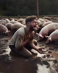 Las consecuencias de esta decisión no son para nada alentadoras: termina en la calle, con hambre, frío y sin dignidad, ya que termina junto a los cerdos (el cual es un animal impuro para los judíos, lo peor, lo más bajo). Imaginen cómo se sentía ese joven al estar viviendo con cerdos, tener menos comida que ellos, lleno de lodo y maloliente.